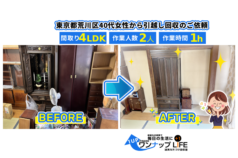 今回は、東京都荒川区にお住まいの50代のお客様よりご依頼いただいた、一軒家(4LDK)の退去に伴う不用品回収事例をご紹介します。